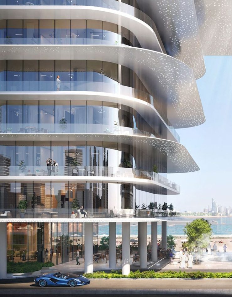 Dubai Harbour Residences, by Shamal Holding and H&H Development, is a high-end complex in the thriving waterfront area of Dubai Harbour. World-renowned architectural firm Nikken Sekkei, creator of One Za’abeel, has been commissioned to design the complex. Elegant low-rise buildings will house a collection of meticulously crafted beachfront 1-4 bedroom apartments along with two penthouses boasting seafront views in areas ranging from 1,033 sq. ft to 5,554 sq. ft. Residences will be distinguished by high ceilings and large terraces, finished in deep blues and crisp whites in line with nautical motifs.